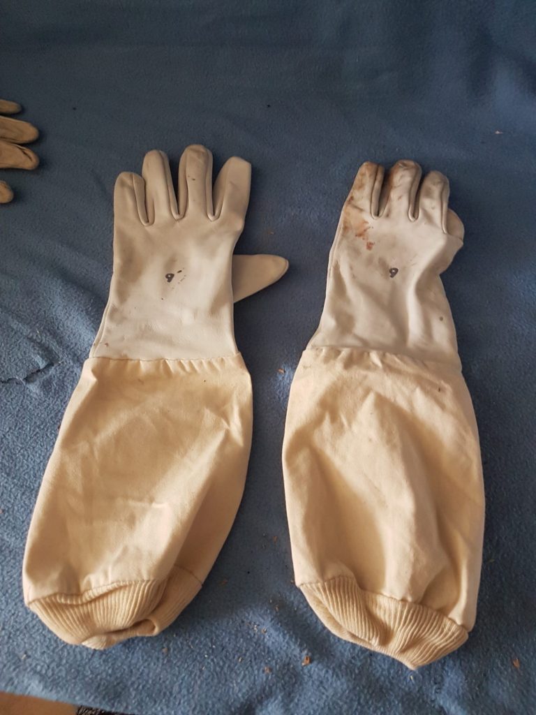 Die Ausführung meiner Imkerschutzhandschuhe besteht aus geschmeidigem Leder. Die langen Stulpen, an deren Ende sich Gummibündchen befinden, gewährleisten den Stichschutz im Hand und Unterarmbereich.