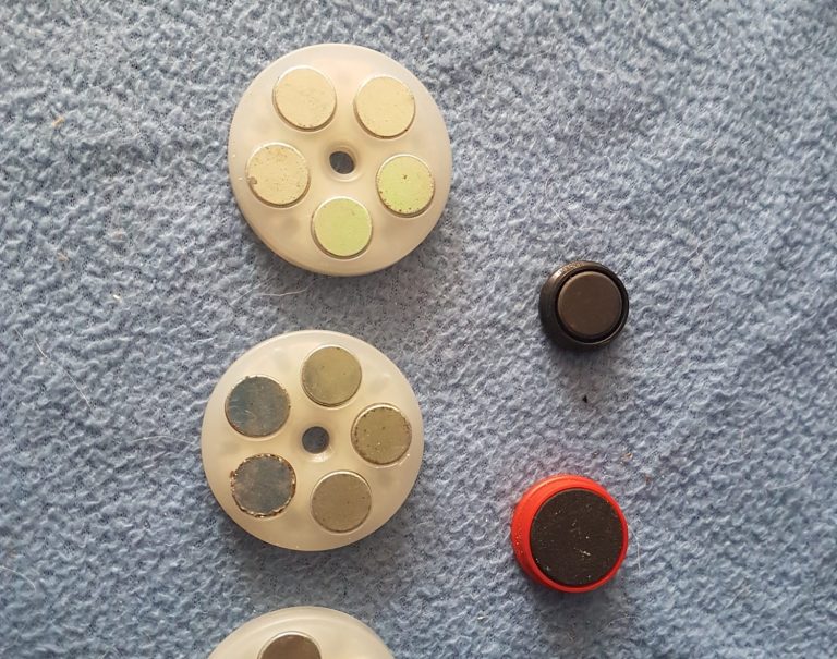 Um nicht viel Schaden anzurichten, kann man mit den Magneten die Verschlussschrauben suchen. Meist bleiben die Magnete auf der Schraube sitzen und zeigen so, wo man mit dem Tapetenmesser die Tapete aufschneiden muss, um an die Schraube zu gelangen.