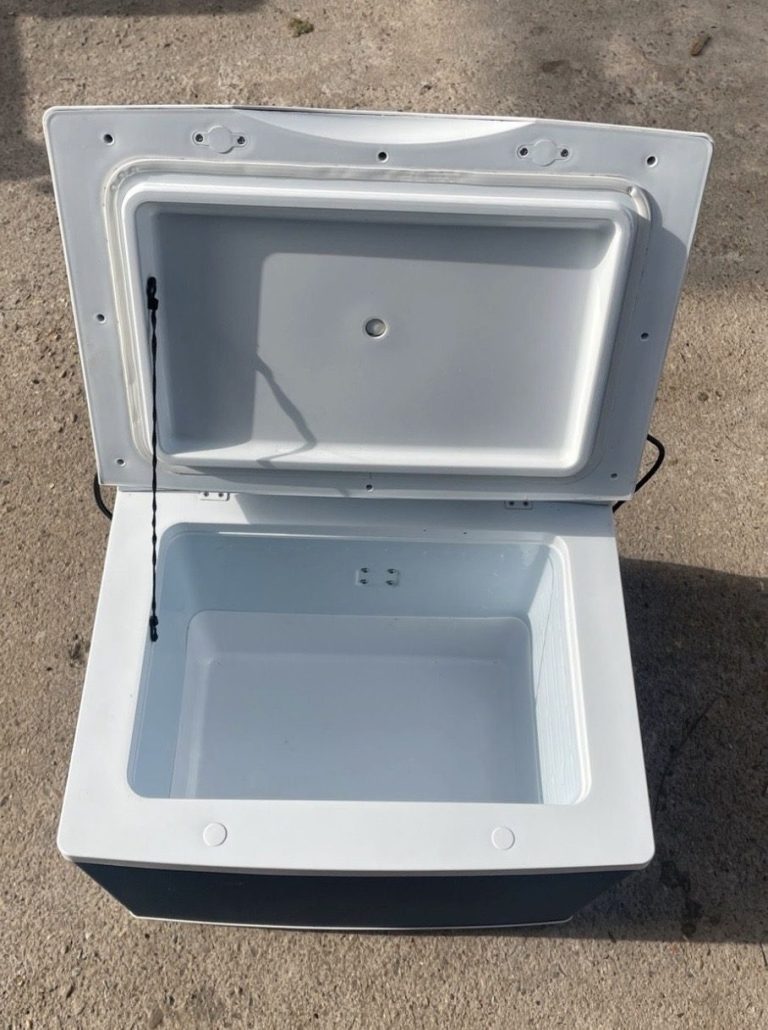 Im aufgeheizten Fahrzeug sorgt eine Kühlbox stetig für erfrischend gekühlte Getränke.